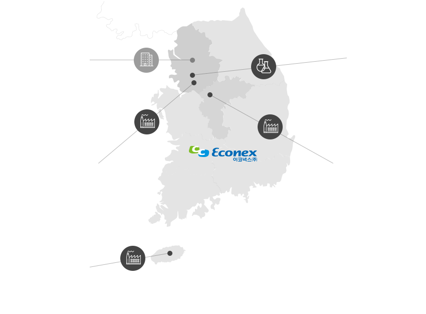이코넥스 주식회사는 평택공장, 새로이 신축된 진천공장과 제주자치도 서귀포공장에서 콘크리트 및 건설용 화학 제품을 생산하고 있습니다. '품질우선주의'에 입각하여 1995년 동종업계 최초로 당사의 평택공장과 모든 생산 제품에 국제공업규격 ISO 9001 인증을 획득하여 고객 여러분께 최고의 품질을 보증하는 시스템을 확립하였습니다.